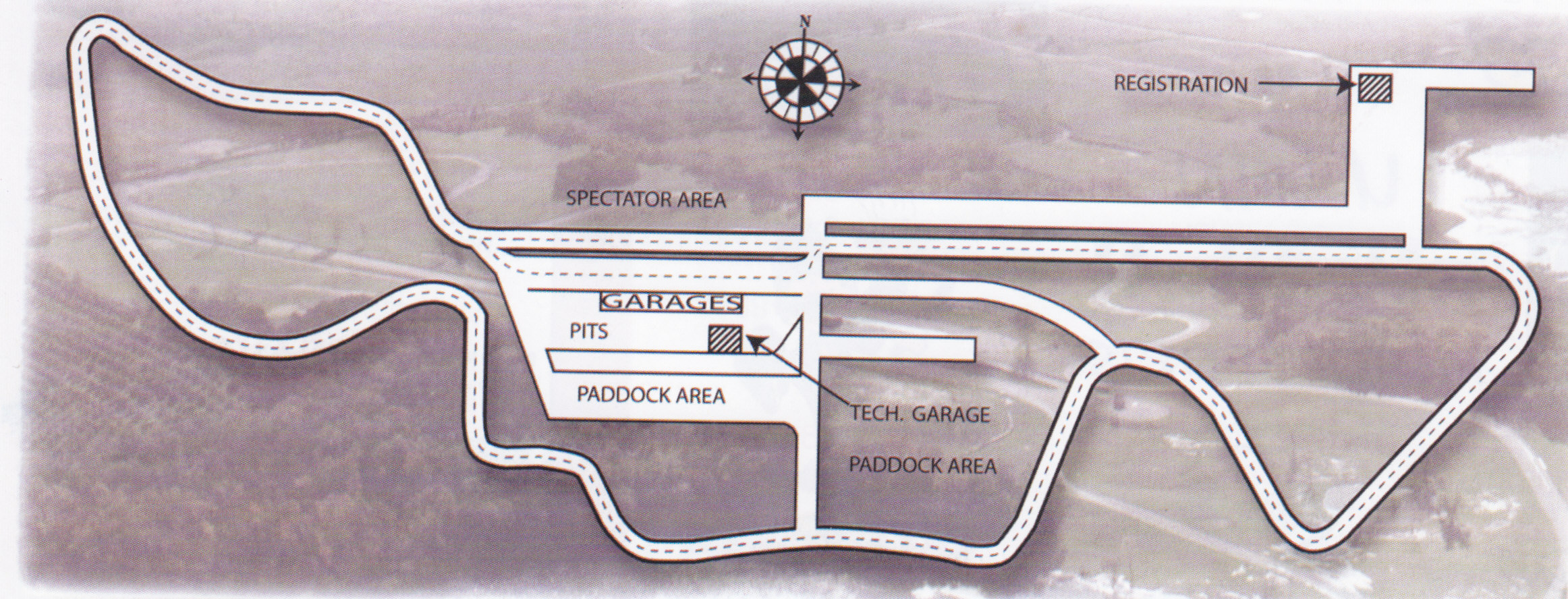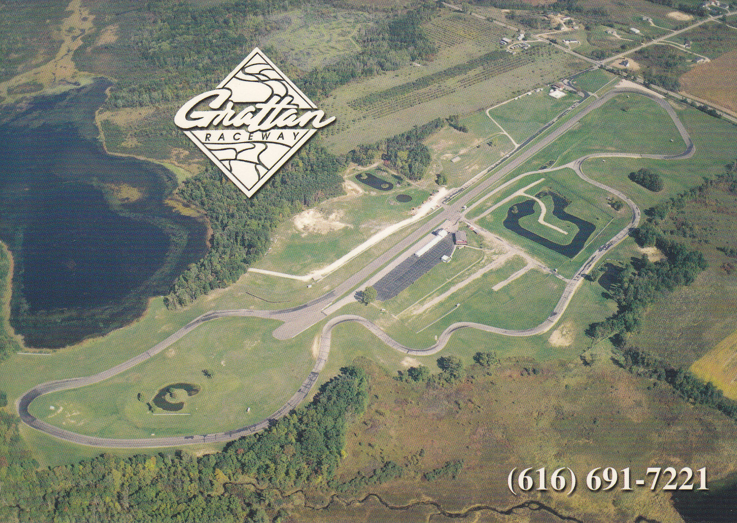 The track is located in rural Grattan Township, twenty five miles north-east of Grand Rapids and occupies a picturesque site. It is surrounded with old growth forest and two lakes and contains some evergreens left over from the Christmas tree farm that occupied the property before the track. The Faasen family that owns and operates the track has fished and hunted on the property since the earliest days. The ponds inside the track are stocked with fish. Many race events are family affairs and children may be seen fishing between and after races. (Illustration 2)