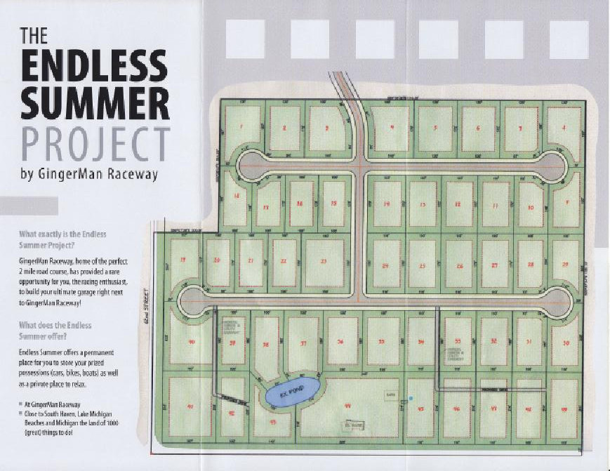 Grattan is still a family business. Son Kurt lives on the grounds, upstairs from the registration building at the entrance to the property and son Sam lives just down Lessiter road. Sam schedules events. Kurt runs the food service. Grattan is famous among Midwestern road racing people for the Saturday night "pig roasts", where the food is plentiful and a keg of beer is always on tap. Commentary on Grattan on the Western Michigan SCCA website enthuses "At every SCCA race there is a dinner provided free to all workers, competitors and crew. It is one of the best in CenDiv (the central division of the SCCA). No half cooked brats or warm beer. It usually consists of chicken, beef, and pork, sauerkraut with sausage, meatballs, fresh rolls, baked potatoes, potato salad, macaroni salad, Cole slaw, corn, beer, pop and wine coolers. If you leave hungry, it's your own fault. AND IT'S FREE!!!!" 62 Actually, it is priced into the weekend. Daughter Terri runs the food concession during events where breakfast and lunch is available for moderate prices. Sons Max and Donald have worked at the track part time during events and Mary still helps with the business affairs and everyone helps with maintenance as needed. Grand children help in the concessions when visiting during an event. E.J. often cuts grass on the property during the week and the Western Michigan website says the property is sometimes mistaken for a golf course. (Illustration 5)