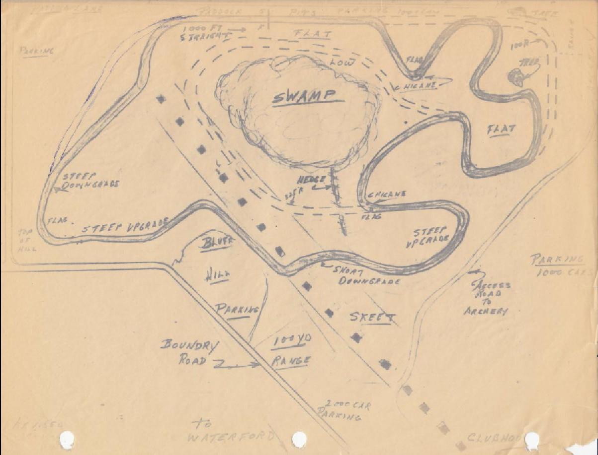Some people remember the road course as a gravel track that left one end of the drag strip and rejoined at the other end.49 Faasen has said more than once the layout of the road course involved a jeep, a few drinks and a desire to make maximum use of the property. He also told me he took a big vodka and orange juice, got in the jeep, turned right off the end of the drag strip and made a turn wherever there was a tree too big to run over with the jeep.50 Other stories indicate it was a couple of people and a few beers. Memories seem equally hazy on exactly when it was paved.