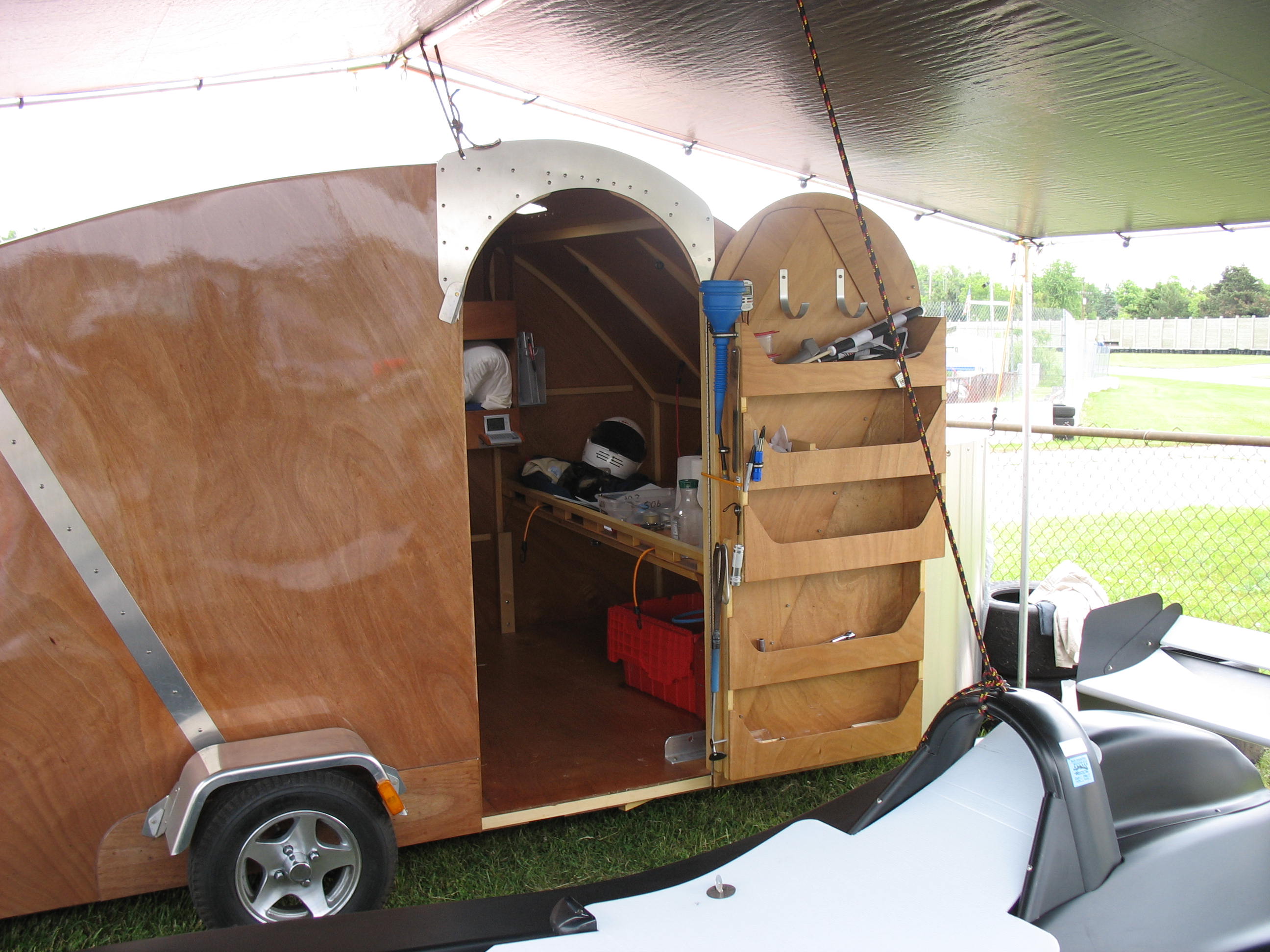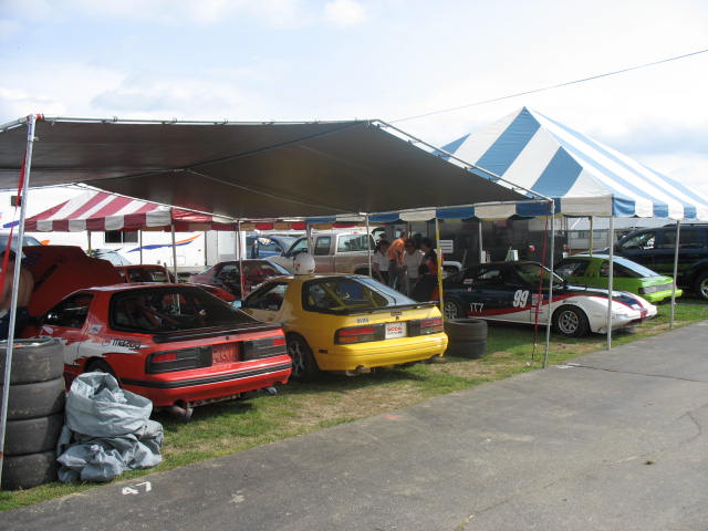 One of the most remarkable features of a road racing event is the establishment of what can only be described as a small city on race weekends. Thursday night the property is empty. By race day the city has been erected and populated, brought in on and in motor homes, trailers, semi tractor trailer combinations and campers. There are centers of commerce. Vendors set up selling tires, tools, spare parts, books and memorabilia, photographic services and art works. There are mobile machine shops and welders.